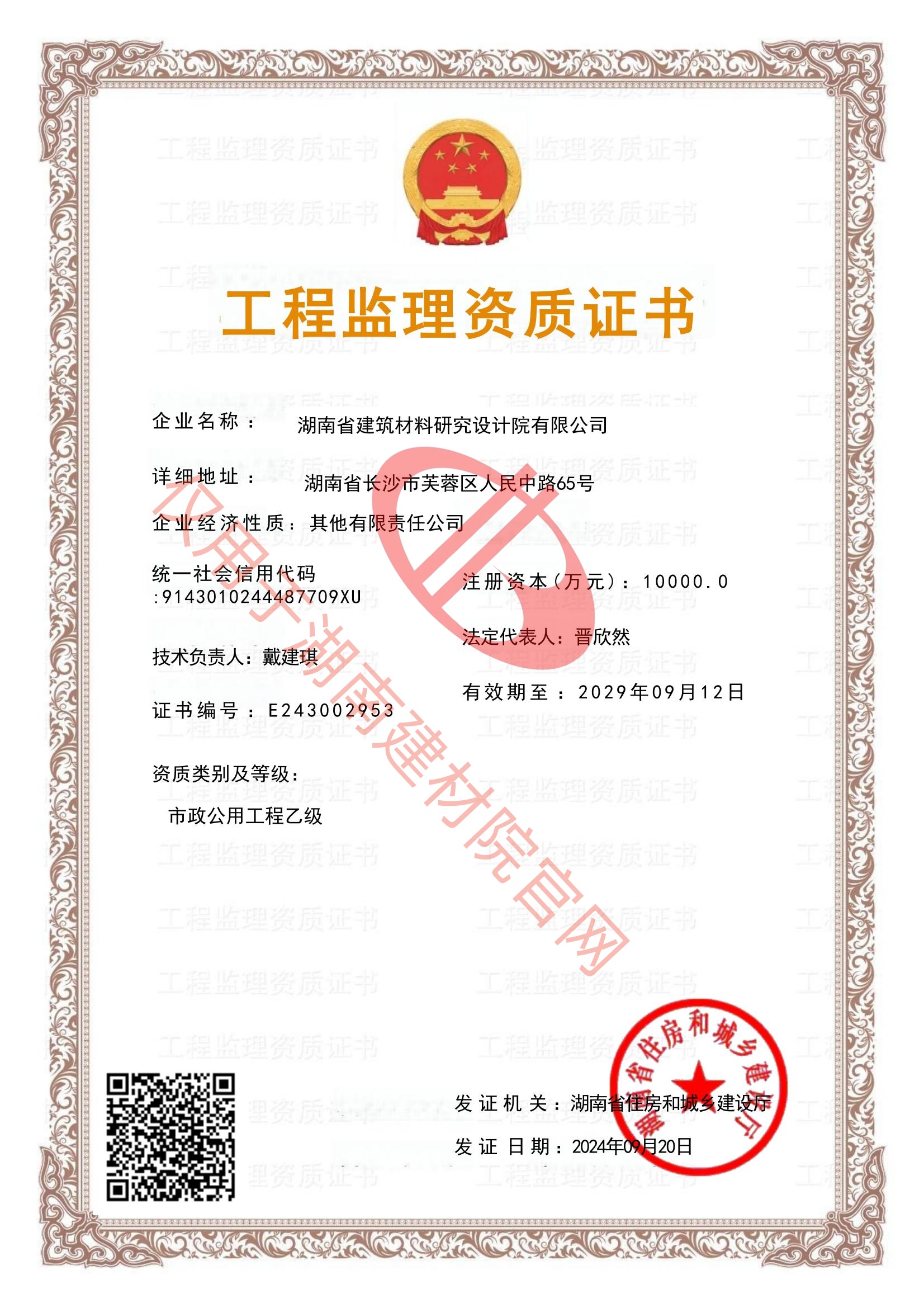 湖南省建筑材料研究設計院有限公司的前身為湖南省建筑材料研究設計院,成立于1958年,是1993年全國首批榮獲國家建材行業設計、工程總承包甲級資質的四個科研設計單位之一。